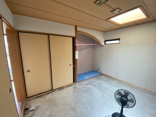 離れ3階は、専用トイレと納戸、押入れが付いた10畳の本格和室です。床面は熊本県産の無農薬畳を敷くよていです。壁には火山灰珪藻土、襖と障子などで構成された日本家屋を彷彿とさせる室内です。畳の上に治療用ベットを置き、和風テイストのサロンとしての趣を演出できます。